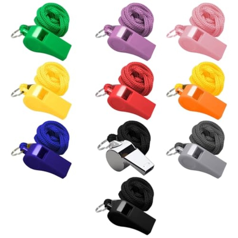 - Includes 10 whistles in assorted colours for easy identification
